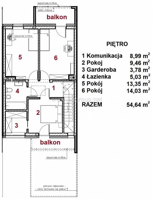 PIĘTRO : 54,64 m2