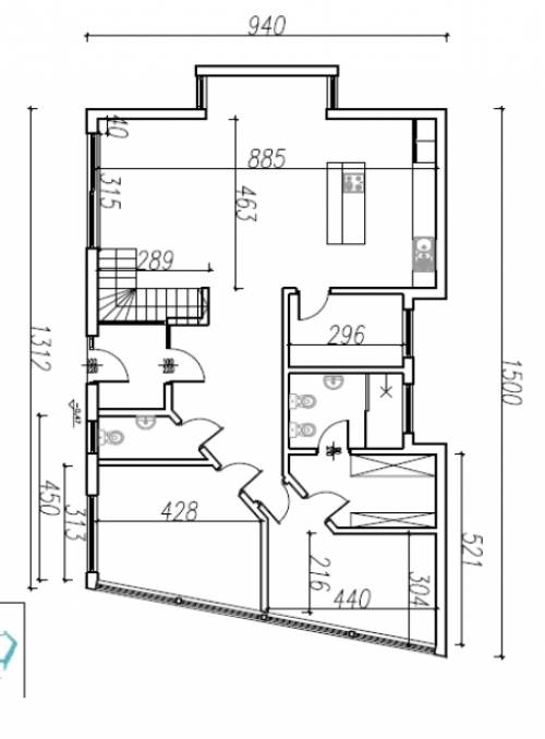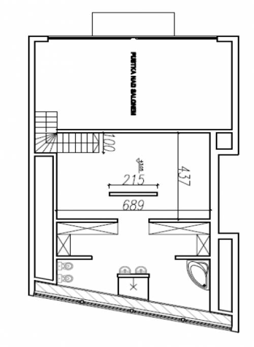 Od strony zachodniej jadalnia posiada przeszklony wykusz a od południowej wyjście na taras poprzez suwane okno tarasowe o szerokości 3,5m. W salonie otwarte schody prowadzą na poddasze, gdzie znajduje się ogromna sypialnia z własną garderobą i przestronną jasną łazienką. Całość zaprojektowana jest w taki sposób, aby w razie potrzeby można było zamknąć stropem pustkę nad salonem i uzyskać w ten sposób metry dodatkowej powierzchni mieszkalnej na poddaszu.