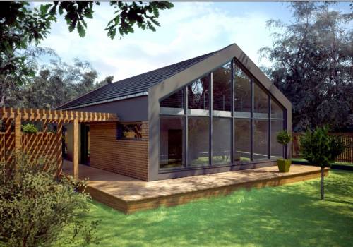 Każde z pomieszczeń mieszkalnych (salon, gabinet, sypialnia) mają własne wyjście na ogród. Przestrzeń nad całą powierzchnią salonu i jadalni jest otwarta do kalenicy. Wielkopowierzchniowe trójkątne okna w ścianie szczytowej salonu zapewniają dużą ilość światła dziennego dla przestrzeni mieszkalnej.