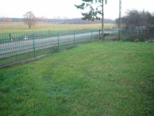 ogrodzona płotem,dwie bramy, sąsiad z jednej strony,na przeciw łąki i