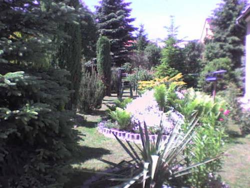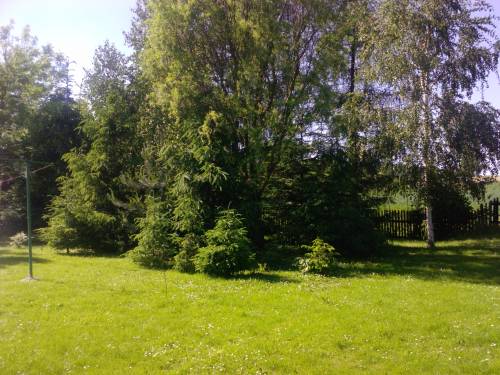 Dach nowy z blachy.Przed domem są dwa piekne duże ogródki,obsadzone ozdobnymi krzewami,kwiatami,skalniaki.Za domem są budynki gospodarcze,a za nimi piekny ogród obsadzony choinkami,świerkami oraz pieknym ,ogromnym orzechem(zwieziony z Libii),Za ogrodem jest pole.Na wiosce znajduje sie szkoła,kosciół i sklep.