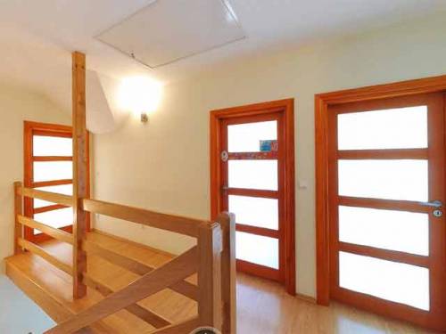 Drewnianymi schodami wchodzimy na drugi poziom. Są tam cztery bardzo przytulne pokoje oraz łazienka z wc i kabiną prysznicową. Z dwóch pokoi, wyjście na duży balkon. Przy domu znajduje się ogrzewany garaż jednostanowiskowy . Stolarka okienna i parapety są mahoniowe i wykonane przez renomowaną firmę .