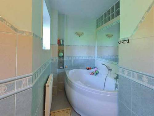 Dom wybudowany w 2002r pow. całkowita 239,0 m2. Ściany zewnętrzne wykonano z porothermu 46, pokryte są tynkiem mineralnym. Dach o więźbie drewnianej pokryty jest dachówką BRAAS. Działka 641 mkw , teren osiedla w pełni zagospodarowany: alejki z polbruku, trawniki, nasadzenia, oświetlenie i co ważne całość ogrodzona. i zamykana bramą na pilota. Każdy dom uzbrojony jest w instalacje sterujące bramą wjazdową, bramką na teren posesji oraz furtką i bramą garażową. Dom świetnie usytuowany: pokój dzienny połączony kuchnia z częścią jadalnianą .Na tym samym poziomie znajduje się jeszcze łazienka z wc, umywalką i wanną narożną oraz pomieszczenie gospodarcze .