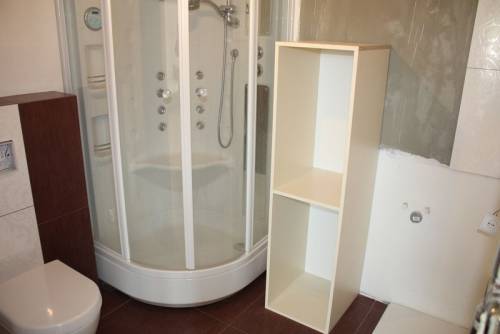Dom wyposażonyw 1 salon kąpielowy, jedną lazienkę i wc na parterze, garderobę.