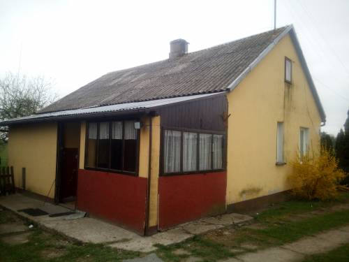 Na sprzedaż dom 90m2, przybudówka 20m2, taras 20m2, garaż 30m2 z dwoma wjazdami, kurnik 16m2, piwnica 24m2, kuchenka 20m2, obora 66m2, spichlerz 20m2, warsztat naprawczy z przyległą drewutnią 30m2, stodoła 150m2. Całość pokryta eternitem. Posesja ogrodzona siatką. W razie pytań kontakt po godzinie 18.