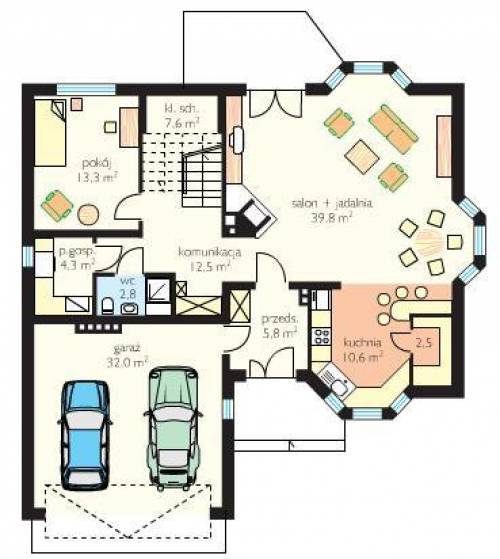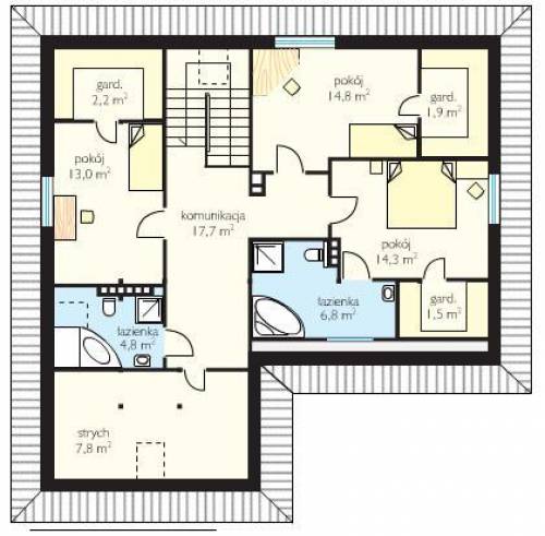 Dom posiada: 5 pokoi z możliwością zaadaptowania pomieszczenia na 6 pokój