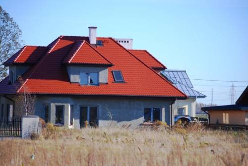 Z zewnątrz: 100% wykończenia ,ocieplenie 20 cm styropianem +tynk ,dachówka ceramiczna Brass ,brama garażowa Wiśniowski , znakomite 6 komorowe okna z okleiną drewnianą na zewnątrz ,okna dachowe Velux ,kompletne obróbki dachowe i kominowe ,rynny pionowe i poziome