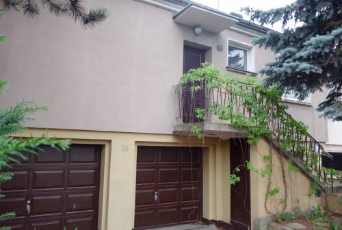 Sprzedam dom położony przy al. Wiśniowej we Wrocławiu (dzielnica krzyki). Działka o powierzchni 594 m kw, dom dwupiętrowy o kubaturze 571 m3. Dach po remoncie w 2012, ogrzewanie z sieci miejskiej, okna pcv, rolety antywłamaniowe. Na parterze znajdują się dwa garaże, dwa pokoje, suszarnia z węzłem c.o., łazienka, pomieszczenie gospodarcze. Na piętrze salon, kuchnia, łazienka, dwie sypialnie, balkon. Dom posiada dwa wejścia, jedno od frontu, drugie od strony ogrodu. Możliwość urządzenia dwóch niezależnych mieszkań. Zabudowa typu bliźniak, budynek słoneczny, ocieplony. Spokojna willowa okolica. Dom otoczony zielenią, bliskość Parku Południowego i Wieży Ciśnień, 5 minut jazdy samochodem od Sky Tower i 15 minut od Rynku. Bliskość przystanków autobusowych linii 127, 136, 144. Dom doskonały dla działalności gospodarczej, dla urządzenia biura lub gabinetu.
