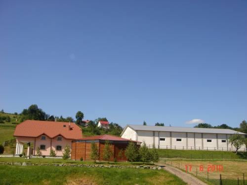 Przy stajni znajduje się kryty lonżownik o średnicy 13m oraz kryta ujeżdżalnia o wymiarach 42x22 m murowana ,dach konstrukcja stalowa , pokryty płytami warstwowymi ,posiadamy również komplet przeszkód . Obok stajni jest pięć padoków ogrodzonych w części ,są to tereny z możliwością zabudowy.Cała posesja jest ogrodzona siatką metalową.