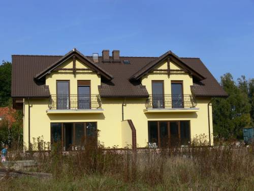 Dom w zabudowie bliźniaczej, stan deweloperski. ściany zewnętrzne pustak+12styropian. Wewnątrz rozprowadzone instalacje, tynki, posadzki, poddasze ocieplone ułożone regipsy, strych. Na dole kuchnia połączona z salonem oraz wyjście na taras. Garaż z bramą segmentową. Na poddaszu 3 pokoje,łazienka, balkon balustrada kuta. Dach pokryty dachówką. Okna PVC okleina drewnopodobna 2 stronna na wszystkich oknach rolety zewnętrzne. Podejścia, podjazd i taras z kostki barwy jesieni. Nieruchomość położona w miejscowości Groblice-Zębice niedaleko Siechnic pod Wrocławiem. Dobry dojazd do Wrocławia drogą Wrocław-Oława oraz koleją PKP i autobusem podmiejskim. Dom na osiedlu domów jednorodzinnych,na którym jest przedszkole. Niedaleko znajdują się dwa dyskonty spożywcze, szkoła podstawowa i gimnazium, ośrodek zdrowia,stadnina koni, las.