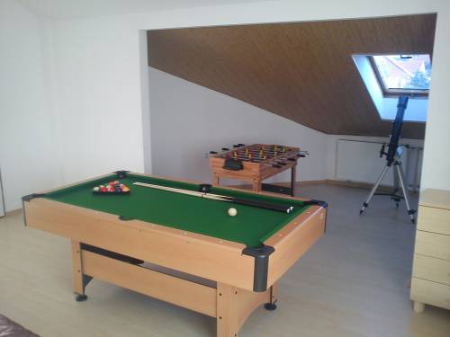Na piętrze duża sypialnia (ok. 35 m2) z pełnym wyposażeniem, łazienka w kolorze zielonym, z prysznicem i WC, pomieszczenie z pralką i suszarką automatyczną oraz trzy pokoje bez umeblowania, o powierzchni 18m2, 12m2 i 10m2, do wykorzystania w dowolnym charakterze.