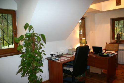 Dom wolnostojący o pow, 120m na działce o pow. 800m z 1995r z cegły w stylu góralskim, idealny dla pary lub malej rodziny. Dom umeblowany o wysokim standardzie (opcja nie/umbelowany). Dom 2 kondygnacyjny tj. parter: salon z kominkiem, sypialnia, duza kuchnia z aneksem jadalnym, łazienka/kabina, garaż, taras. Piętro: sypialnia, gabinet, łazienka/wanna. W salonie na podłodze panele w pozostałych drewno. W łazienkach terakota. Ogrzewanie centralne na koks-węgiel-drewno i podlogowe w lazienkach i przedpokojach. Dom b. zadbany, przytulny z klimatem.