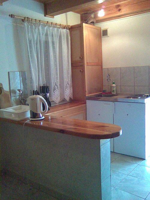 - salon (TV) umeblowanie na dole połączony z kuchnią (wyposażoną lodówka kuchenka 2 palnikowa