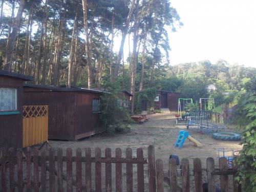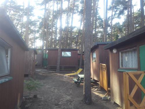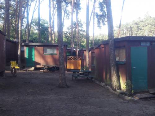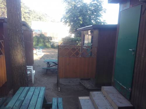 11 domków (o pow. ok. 21m2 każdy) + 2 budynki towarzyszące (świetlica,magazyn), wraz z wyposażeniem. 5 domków z łazienką wewnątrz (wc/prysznic), 6 domków z wc/prysznicem w osobnym budynku. Wszystkie domki mają podłączenie do prądu i wody. Pow. zabudowana łącznie 400 m2.