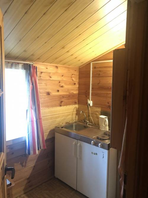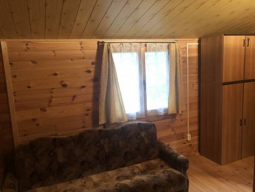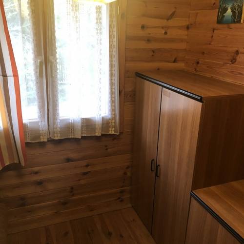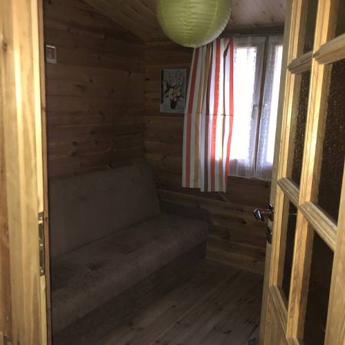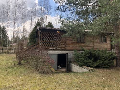 Drewniany dom parterowy, postawiony na murowanych fundamentach (w podpiwniczeniu garaż oraz pomieszczenie gospodarcze). Dom składa się z tarasu, 3 sypialni, kuchni oraz WC. Ocieplony, na dachu położona blachodachówka. Powierzchnia 33,3 m2.