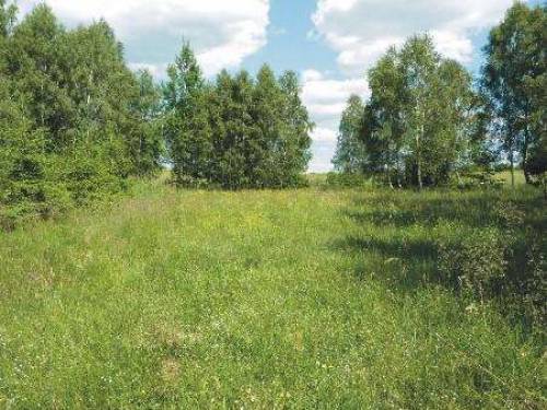 Teren działki równy, po granicy porośnięty świerkami i brzozami.