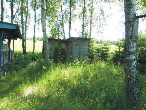 Na działce znajduje się wiata drewniana z przyczepą kempingową oraz drewniany budynek z WC i natryskiem.