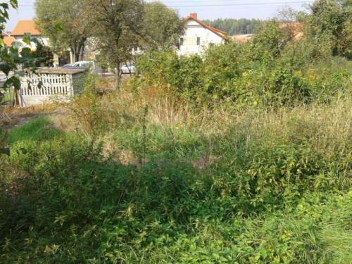 Działka stanowi grunt niezabudowany, kształtem zbliżony do wydłużonego prostokąta, front od ulicy. Po obu stronach działki są już zabudowane. Bezpośrednie sąsiedztwo nieruchomości stanowi zróżnicowana zabudowa mieszkalno - usługowa oraz wolne tereny użytkowane rolniczo. Dojazd do nieruchomości odbywa się drogą utwardzoną asfaltem. Teren ogrodzony przy pomocy siatki rozpiętej pomiędzy słupkami stalowymi oraz przy pomocy betonowych elementów prefabrykowanych. Działkę porastają drzewa owocowe które można wyciąć lub uwzględnić w przyszłym planie ogrodu.