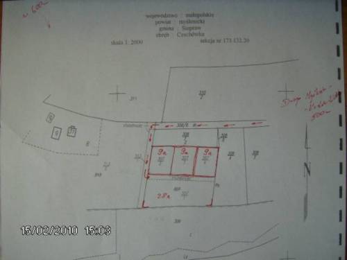 Sprzedam działkę budowlaną w Czechówce gmina Siepraw o pow.9 arów woj. małopolskie. Położona na południowym stoku o lekim nachyleniu. Widokowa, cisza spokój,dojazd drogą asfaltową ostatnie 200m drogą utwardzoną. Działka w planie oznaczona symbolem MN, wydzielona geodezyjnie i ustalone granice,zapewniony notarialnie dojazd, wydane warunki techniczne na uzbrojenie w wodę, prąd i gaz, media na sąsiedniej działce, notarialna zgoda na podłączenie. Po uzyskaniu pozwolenia na budowę media doprowadzają dostawcy a własciciel działki płaci tylko opłatę przyłączeniową. Do zakupionej działki gratis aktualna mapa do celów projektowych. Po zakupie można od razu występować o pozwolenie na budowę. Możliwość zakupu większej działki o powierzchni do 56arów. Do wyciągu narciarskiego Siepraw-Ski 600m w lini prostej, za drogą 1800m, koło wyciągu znajduje się bank, stacja benzynowa, składy budowlane, sklepy. Najbliższy sklep 500m od działki. Bardzo dobry dojazd do Krakowa, Wieliczki, Myślenic