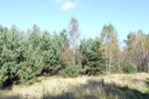 ? częściowo zalesione, sosny i lasek brzozowy,