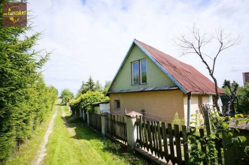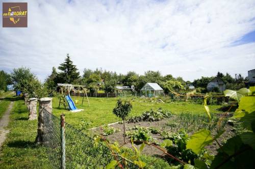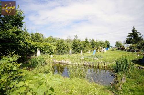 Działka o pow. 900m2, płaska w kształcie trójkąta, z dużą dwupoziomową altanką, oczkiem wodnym, wędzarnią. Częściowo ogrodzona.