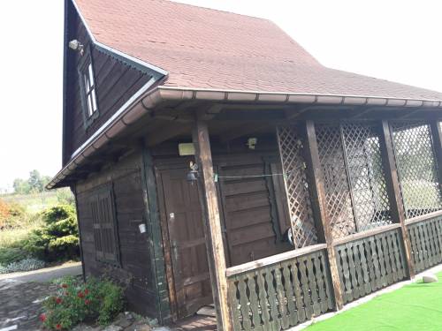 Lekki spad. W domku letniskowym, który tam stoi jest możliwość mieszkania: jest woda, prąd, szambo ekologiczne, łazieneczka, kuchnia, a na górze łóżka.
