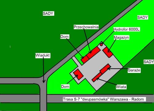 Gospodarstwo sadownicze 5.06ha, w odległości 30 minut drogi od Warszawy, wraz z budynkami do sprzedania. Wszystkie budynki oprócz dużej wiaty(krytej papą) są pokryte blachą. W gospodarstwie przeważają jabłonie(kilkuletnie, kilkunastoletnie, nowe nasadzenia), czereśnie, wiśnie, śliwy. Dodatkowo mała hobbystyczna plantacja winorośli w pełni owocująca.W gospodarstwie znajduje się jeden dom wolnostojący o wymiarach około 11m x 12m,4 pokoje, 2 kuchnie, łazienka. Następnie budynek przechowalni o wymiarach 10m x30m, składający się z części podziemnej ( 300m2 do przechowywania owoców), oraz części naziemnej.1/3 części naziemnej, to pomieszczenia mieszkalne, 3 pokoje, kuchnia, łazienka , spiżarka, a 2/3 to sortownia owoców z dwoma windami wywożącymi jabłka z przechowalni, oraz pomieszczenie na ciągnik, opryskiwacze i narzędzia warsztatowe.Kolejny budynek gospodarczy o wymiarach około 7m x20m z dwoma garażami (w jednym kanał samochodowy) oraz mieszkaniami dla pracowników sezonowych( 2 pokoje).Dodatkowo duża wiata na opakowania i samochód ciężarowy,a także letnia kabina prysznicowa dla pracowników sezonowych .Są również dwie mniejsze wiaty na maszyny rolnicze.Miedzy dużą wiatą a budynkiem przechowalni duży hydrofor na 6900 litrów wody do opryskiwania sadu,zasilany wodą ze studni głębinowej.Oprócz tego 3 studnie kręgowe czynne, a w najbliższym czasie ukończony zostanie wodociąg gminny. Media prąd, gaz, internet, bardzo blisko do szkoły podstawowej -około 1000m. Istnieje możliwość zakupu maszyn rolniczych , które są w gospodarstwie.