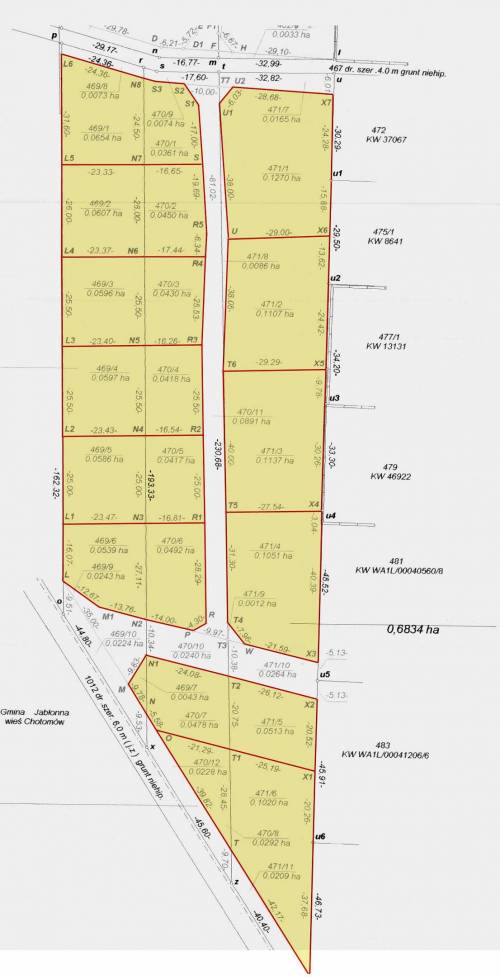 Działka o powierzchni 1000 m2 w kształcie prostokąta o wymiarach 25m x 40m, położona w Kałuszynie, tuż za granicą Chotomowa w sąsiedztwie nowo powstałego osiedla domów jednorodzinnych .
