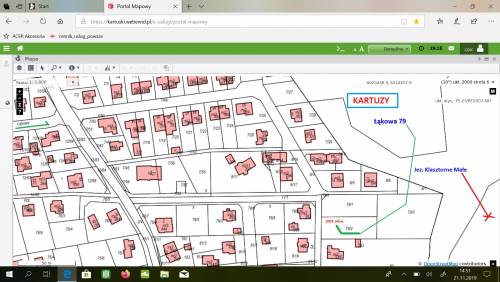 Sprzedam działkę budowlaną w Kartuzach, ul. Łąkowa 79, pow. 1002 mkw, prostokąt ok. 20 m x 50 m, lekki spad od ul. Łąkowej do Jez. Klasztornego Małego, częściowo ogrodzona, z 3 stron otoczona domami jednorodz. (w pobliżu sieci miejskie: woda, kanalizacja, prąd, gaz), ulica asfaltowa.