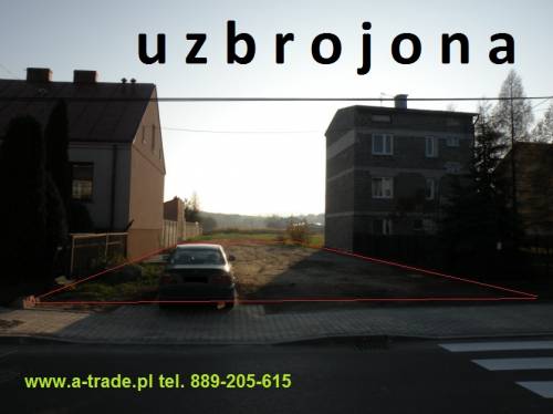 Działka budowlana, utwardzona, uzbrojona w wodę i kanalizację sanitarną. Prąd i gaz przed działką, w ulicy.