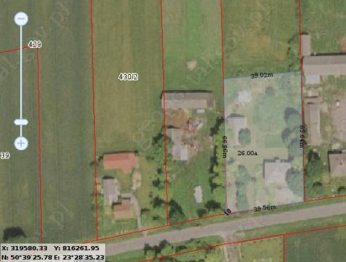 Działka o wymiarach ok 39x66, płaska, własnościowa, budowlano-rolna, klasa 3a, uzbrojona z możliwością podłączenia światłowodu.