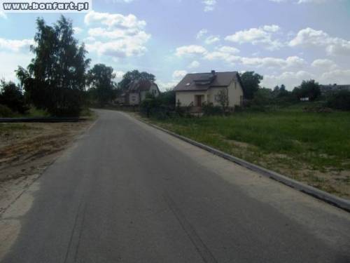Działka położona jest na nowopowstającym osiedlu domków jednorodzinnych. Prąd i woda biegną obok granicy działki. Wykonano też kanalizację. W oddali widać rozległe jezioro.