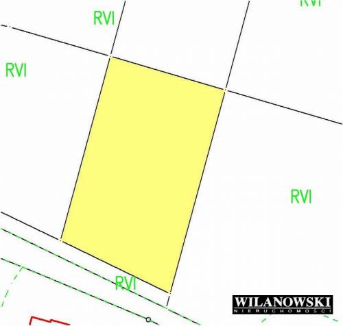 Grunt w kształcie zbliżonym do prostokąta, o wymiarach około 24 m (od strony drogi) x 42 m x 38 m x 24 m.