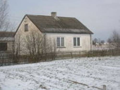 Dom murowany z lat 70 -tych, pokryty eternitem - składa sie z dwóch dość dużych pokoi, kuchni i przestronnej sieni - dom nie ma łazienki, a jego stan wymaga remontu.