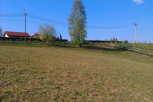 Działka ogrodzona płotem żerdziowym.