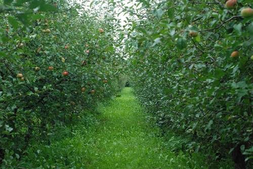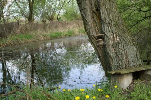 Staw o pow. ok. 90m2. Sad owocowy szpalerowy, niskopienny (jabłonie, grusze), ogród warzywny.
