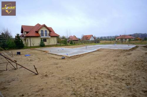Sama działka ma kształt prostokąta, częściowo ogrodzona (brak ogrodzenia frontowego) z rozpoczętą budową nowoczesnego domu jednorodzinnego. Z wykonanymi przyłączami wodno-kanalizacyjnym, energetycznym (woda, prąd, kanalizacja już podłączone - wyprowadzone z wylewki). Możliwość przyłączenia tv-int.