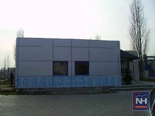 Hala produkcyjna z zapleczem - PU-1669m2 (kubatura-7696,52m3). Konstrukcja: Fundamenty- żelbetowe na podsypce piaskowej(zbrojenie monolityczne), -Ściany fundamentowe (murowane z bloczków betonowych o gr. 25cm). Ściany przyziemia - murowane z gazobetonu o gr. 25cm, Konstrukcja dachu - dwuspadowa stalowa z dźwigarów kratowych o rozpiętości 20,55m, o rozstawie co 6,0m ze stali kształtowej St3SX, w nawie bocznej dźwigary z dwuteownika 260, Pokrycie dachu blachą trapezową T55, Stolarka okienna i drzwiowa ? Aluminium, Posadzka w hali + nawierzchnia przemysłowa, Elewacja tylna oraz boczna- blacha trapezowa, frontowa z alucobondu, Podłogi w pomieszczeniach towarzyszących (stołówka, szatnia, pomieszczenie socjalne- terakota), W magazynie, i pom. pozostałych - wylewka betonowa, Sufit w Hali produkcyjnej oraz w pozostałych pomieszczeniach ocieplany warstwą 20cm styropianu z wyłożoną blachą trapezową powlekaną. Ogrzewanie z pieca miałowego, wentylacja mechaniczna, instalacja elektryczna - 230V, 380V, instalacja alarmowa, instalacja rejestr. czasu pracy, ciepła i zimna woda. Rynny i rury spustowe z PCV.