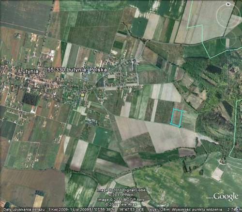 Działka budowlana o pow. 3000 m. kw, w kształcie prostokąta 30x100m, możliwość podziału na dwie lub trzy mniejsze w zależności od potrzeb, położona w miejscowości Lutynia, zlokalizowana tuż przy granicy z Wrocławiem, bardzo dobra lokalizacja, cicha, przyjemna okolica w sąsiedztwie lasów i zabudowań domami jednorodzinnymi.