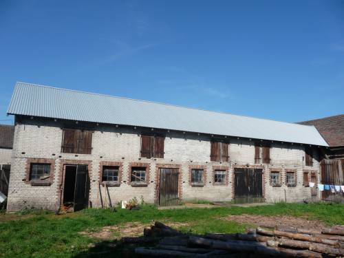 Mam do sprzedania budynki gospodarcze, tj. duża stodoła ( 2 klepiska i piwnica) kryta dachówką wraz z połączoną z nią stajnią/oborą ( 5 pomieszczeń, doprowadzona woda) z funkcjonalnym strychem kryta blachą trapezową oraz pomieszczenie gospodarcze/szopa ( 3 pomieszczenia, doprowadzona woda) z funkcjonalnym strychem kryta dachówką. Dom nie nadający się do zamieszkania, stary poniemiecki, pruski mur. Studnia na podwórku. A za obiektami działka/ sad.