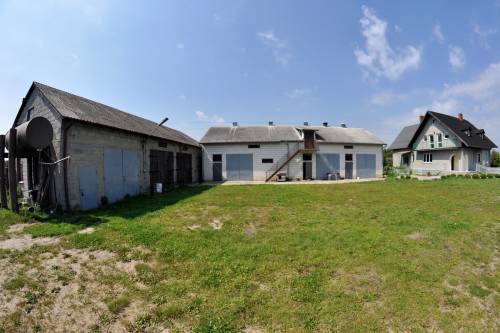 Budynki gospodarcze o powierzchni ponad 600 m2 o wysokości 4m, z możliwością prowadzenia działalności gospodarczej, rzemieślniczej, agroturystycznej itp. w tym przechowalnia na owoce, stodoła, garaże. Wszystkie budynki są murowane, w pełni uzbrojone; woda, gaz, światło, ogrzewanie kanalizacja, studia głębinowa.