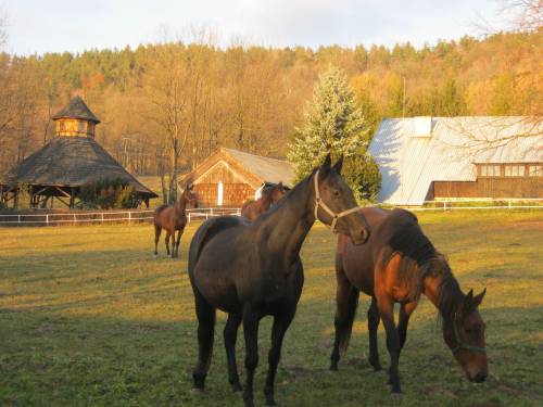 Stajnie dla 35 koni, kryta ujeżdżalnia, bieżnia zimowa, ogrodzone padoki, własne źródła wody, dom, mieszkanie...więcej na www.perla-bieszczad.pl