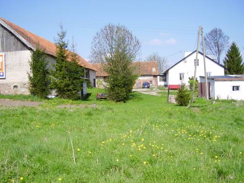 Na sprzedaż część gospodarstwa rolnego, tj. 1/2 budynku mieszkalnego, 2/3 stodoły, 1/3 garażu - wszystko usytuowane na powierzchni 0,4 ha przy samej drodze krajowej nr 59 (8 km od Giżycka).