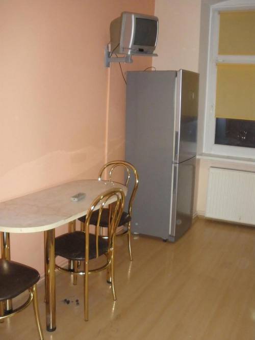 W pokoju znajduje się przestronna szafa z przesuwanymi drzwiami, duża pojemna komoda oraz skórzany wypoczynek z fotelem ( rozkładany) oraz ława z metaloplastyki ze szklaną szybą.Na podłodze znajdują się panele, ściany pomalowane w nowoczesnym designie w kolorach beż-brąz. W oknach znajdują się rolety. W łazience znajduje się wanna, umywalka, lustro, toaleta oraz szafka, dodatkowym atutem łazienki jest okno. Przedpokój z podwieszanym sufitem, na podłodze znajduja się panele. Kuchnia wyposażona w szafki, zlewozmywak, okap,kuchenkę gazową z piekarnikiem elektrycznym, lodówkę, mikrofalówkę, telewizor oraz stół z krzesłami.Słoneczna kuchnia z oknem. W mieszkaniu znajduje się ogrzewanie gazowe. Mieszkanie położone w kamienicy niedaleko sądu. Klatka schodowa po generalnym remoncie, budynek ocieplony z domofonem cyfrowym.