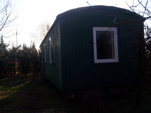 wagon mieszkalny, wewnątrz wyłożony panelami, 3 okna plastikowe, lenteks na podłodze,dł8,8 szer2,9
