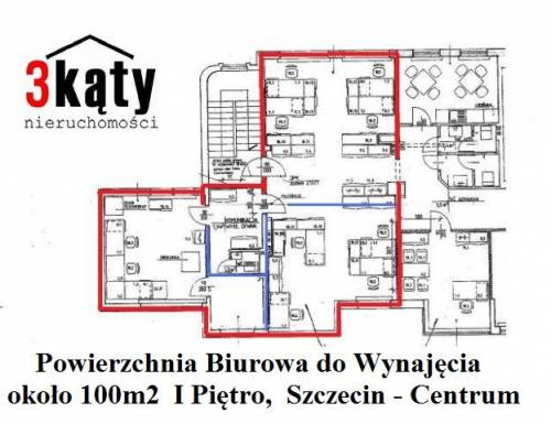 Powierzchnia Biurowa. Szczecin, ścisłe Centrum. Ulica Handlowa. Okna biura dobrze widoczne z ulicy - możliwość reklamy. Powierzchnia lokalu około 100m2 na jednym poziomie ( 3 pokoje ). I Piętro. Dyskretne wejście do lokalu ( klatki schodowej ) od strony zadbanego podwórza - parkingu. Biura dobrze doświetlone światłem dziennym - duże okna. Lokal z pełnym okablowaniem teleinformatycznym. W bezpośrednim sąsiedztwie lokalu znajduje się dużo firm i instytucji finansowych. Idealne miejsce dla firmy dbającej o swój wizerunek. Istnieje możliwość wynajęcia mniejszej lub większej powierzchni biurowej. Top Lokalizacja.