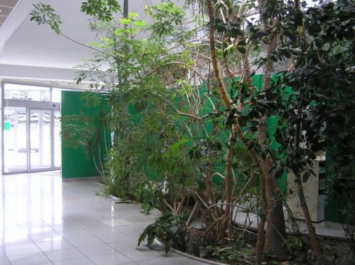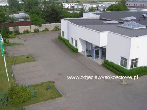 Część biurowa: 500 m2 - wysoki standard , reprezentacyjny hol z roślinami i świetlikiem, klimatyzacja, okablowanie komputerowe, alarm.