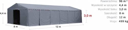 Namiot Magazynowy 8m x 12m (96m?) PROFESSIONAL PLUS 9250zł