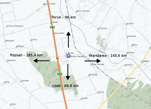 Doskonała lokalizacja- same centrum Polski. Bezpośredni dojazd drogą powiatową, krajowa \"jedynka\" w odległości ok. 600 metrów. Istnieje możliwość korzystania z bocznicy kolejowej znajdującej się na placu po dawnej Cukrowni.