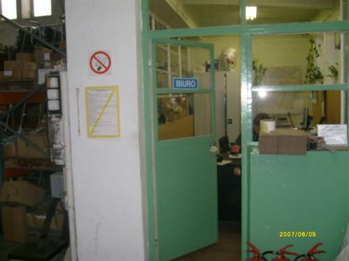 Magazyn z rampą, dwia bramy wjazdowe, wysokość składowania 6m, wydzielone dwa pomieszczenia biurowe, przed magazynem parking dla klienta, teren ogrodzony, dozorowany, dobre położenie logistyczne.